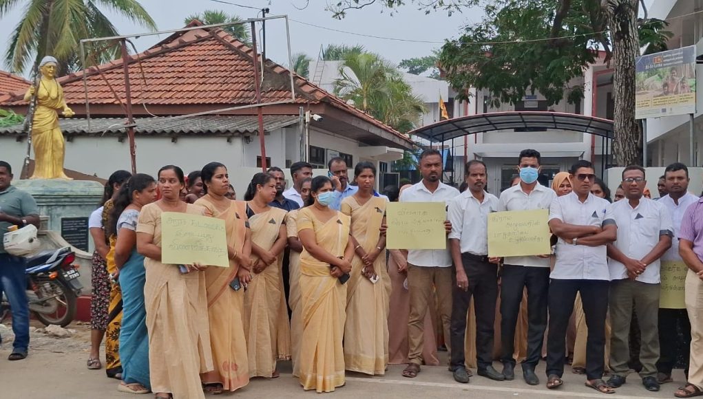 நேற்றைய தினம் (29.12) பகல் 12 மணி அளவில் மன்னார் பிரதேச செயலகத்தில் நுழைந்த கும்பலொன்று கடமையில் ஈடுபட்டிருந்த புதுக்குடியிருப்பு பெண் கிராம அலுவலர் மீது தாக்குதல் மேற்கொள்வதற்கு முயற்சித்தமைக்கு கண்டனம் தெரிவிக்கும் வகையில்,