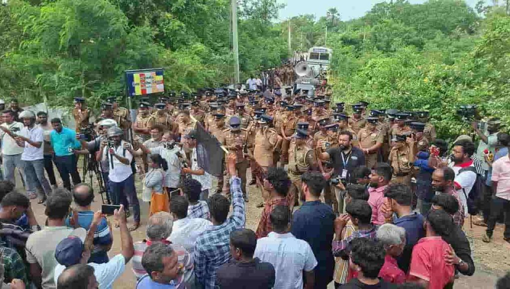 இதனையடுத்து, பேருந்துகள் மூலம் பெருமளவில் பொலிஸார் அழைத்து வரப்பட்டு அப்பகுதியில் குவிக்கப்பட்டுள்ளனர்.