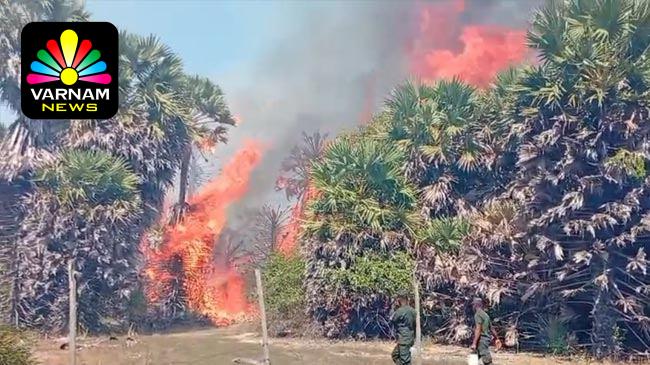 பல மணிநேர போராட்டத்தின் பின்னர், நேற்று மாலை 4 மணியளவில் தீ முழுமையாகக் கட்டுப்பாட்டுக்குள் கொண்டு வரப்பட்டது. தீப்பரவல் காரணமாக பனை மரங்களுக்குப் பாரிய நஷ்டம் ஏற்பட்டுள்ளமை குறிப்பிடத்தக்கது.