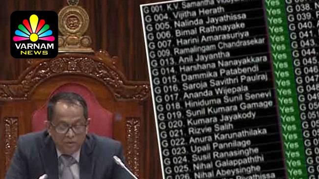 ஐக்கிய மக்கள் சக்தி, இலங்கை தமிழரசுக் கட்சி, புதிய ஜனநாயக முன்னணி மற்றும் ஸ்ரீலங்கா பொதுஜன பெரமுன ஆகிய கட்சிகளின் உறுப்பினர்களும், சுயேச்சை உறுப்பினர் அர்ஜுனா ராமநாதனும் இப்பிரேரணைக்கு எதிராக வாக்களித்தனர்.