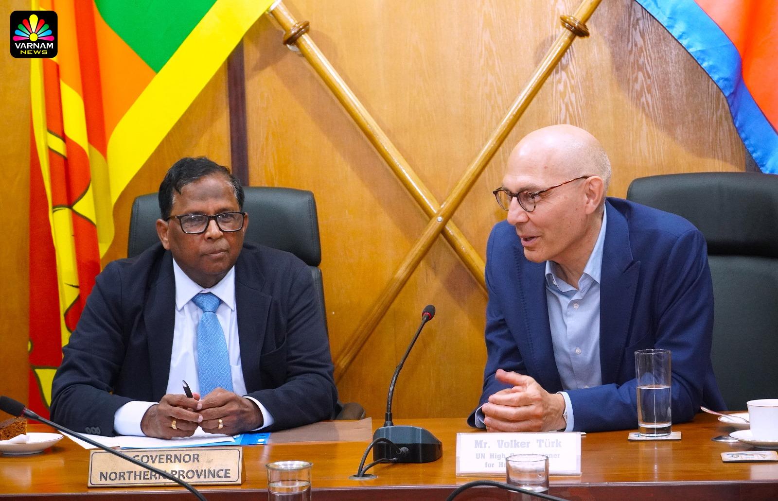 வடக்கு மாகாண ஆளுநர் நா.வேதநாயகன் தலைமையிலான குழுவினருக்கும், ஐ.நா. மனித உரிமைகள் உயர் ஸ்தானிகர் வோல்கர் டர்க் தலைமையிலான குழுவினருக்கும் இடையே கலந்துரையாடல் இடம்பெற்றது.