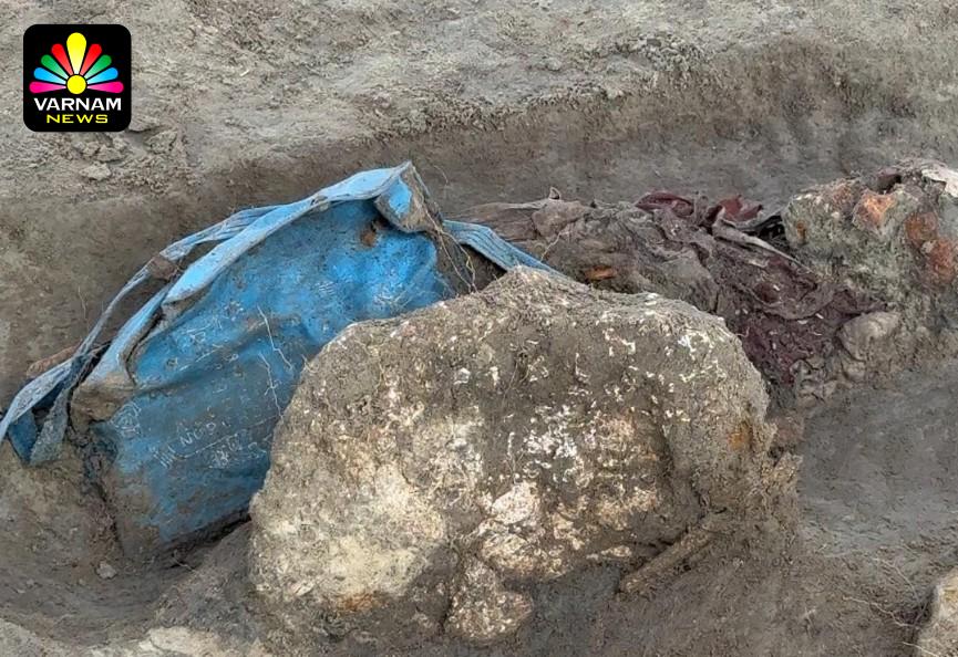 அவற்றில் ஒரு சிறு குழந்தையின் எலும்புக்கூடு நீல நிற பை மற்றும் சில உடை துணிகள் உடன் கண்டுபிடிக்கப்பட்டன.