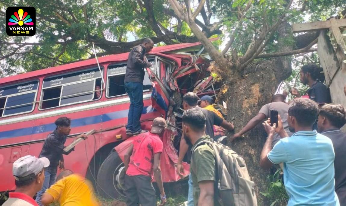 வேக கட்டுப்பாட்டை இழந்த பஸ் வீதியை விட்டு விலகி மரமொன்றில் மோதி விபத்துக்குள்ளாகியுள்ளது.