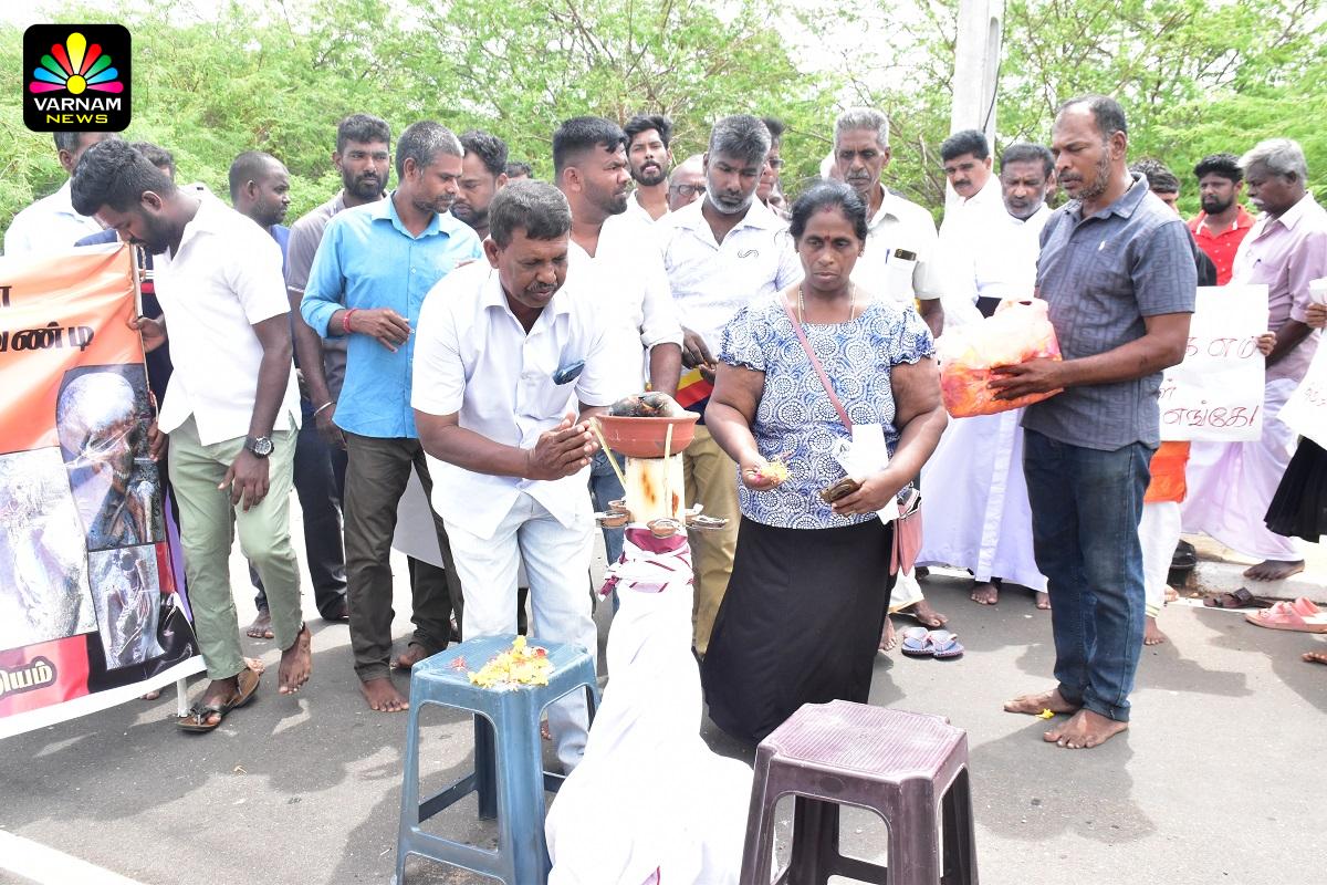 வடக்கு கிழக்கில் மனிதப் புதைகுழிகளில் எலும்புக்கூடுகளாக மீட்கப்பட்டு வரும் இறந்த உறவுகளுக்குச் சுடரேற்றி, மலர் தூவி அஞ்சலி செலுத்தினர்.