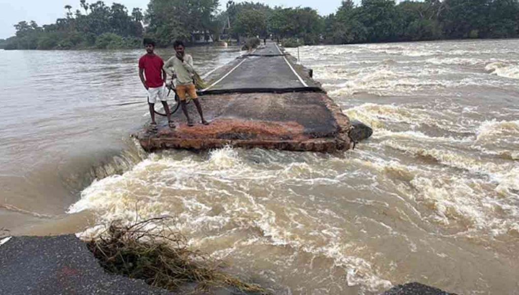 முல்லைத்தீவிலிருந்து பரந்தன் வரையான வீதியில் நந்திக்கடல் ஊடாக அமைந்துள்ள பாலத்தின் இரண்டு பகுதிகள் உடைந்ததன் காரணமாக, பாலத்தின் ஊடான அனைத்து போக்குவரத்து நடவடிக்கைகளும் இடைநிறுத்தப்பட்டுள்ளதாக மாவட்ட அனர்த்த முகாமைத்துவ நிலையம் தெரிவித்துள்ளது.