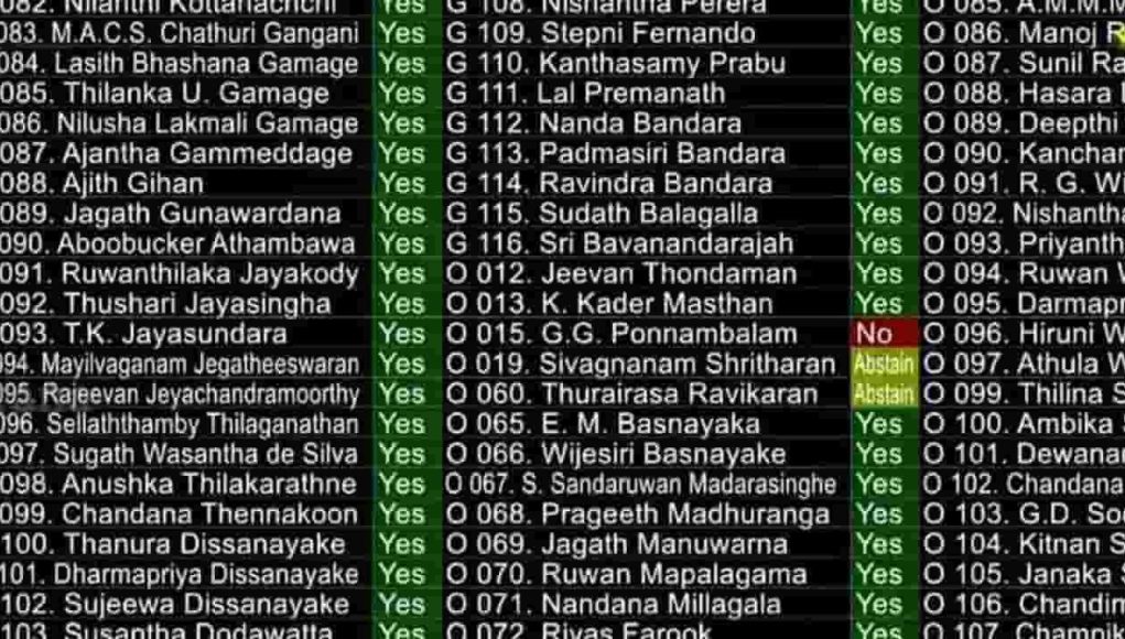 அத்துடன் எதிராக 01 வாக்கும் அளிக்கப்பட்டது. இருவர் வாக்களிப்பில் இருந்து விலகினர்.